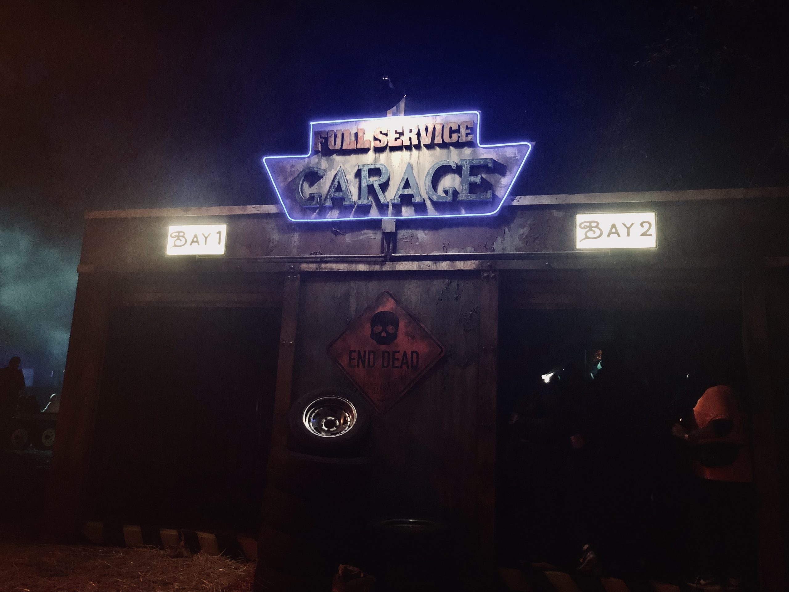 After taking in some of the town, our first stop was of course the Hayride. The entry was through a new gas station facade that really sets the mood before you even step foot on the trailer. Overall, the hayride wasn’t much of a departure from previous years, but the vignettes managed to tie in more clearly to the event’s theme. We appreciated not having to exit the hayride for a walking portion, as that had caused unnecessary congestion (foot traffic AND allergies) in previous years. We were really impressed with some of the stunts and well-timed scares this season. The scareactors here are super dedicated, and they have to be to effectively startle guests riding in the ‘safety’ of the flatbed trailer. Once off the ride, we made our way through the new addition of a decrepit cemetery before heading back into town. The hayride has never been particularly frightening to us, but we still enjoy it. We’d consider it a great introduction to scaredy cats or brave children (at their parents’ discretion of course) that want to start getting in on some spooky seasonal fun!