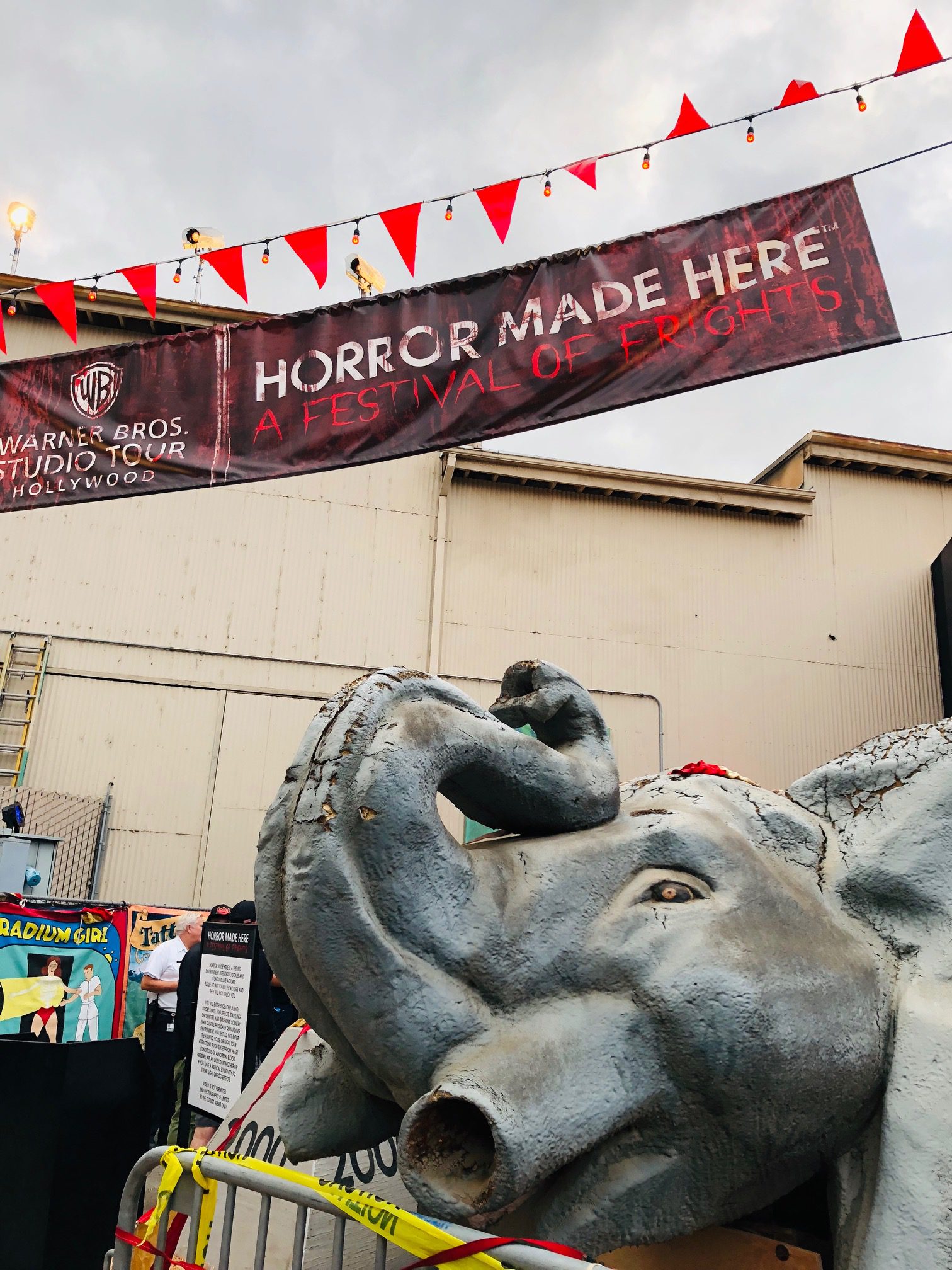 While Warner Brothers Studios Hollywood has been introducing experimental Halloween events the last few seasons, this year they went full in, expanding into a full-scale Halloween attraction. This was our first year visiting them for Halloween time and while we knew it would be well done, we werenât really sure what it would compare to. We soon realized that WB Studio Tourâs Horror Made Here: Festival of Frights canât easily be compared to other studio haunts, and is really is in its own category. The event is intimate (only about three thousand guests per evening), very, very detailed, creative, and clearly professionally planned. Itâs small in comparison to HHN or Knotts but has plenty to see and do. The experiences are more interactive and longer than a lot of mazes weâve been through this season, and we were thrilled to find that guests are sent through in small groups rather than conga lines. The entire event takes place on their backlots so itâs easy to forget youâre in Los Angeles. Theyâve created their own horror town!